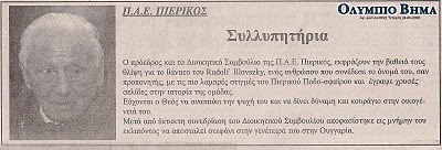Συλλυπητήρια της ΠΑΕ Πιερικός