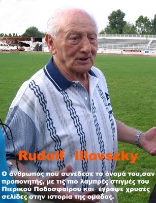 Πέθανε από πνευμονία ο 86χρονος δάσκαλος του ποδοσφαίρου Ρούντολφ Ιλόφσκι Ένας από του ξένους προπονητές που αγαπήθηκε από τους ποδοσφαιριστές και τους φιλάθλους της Πιερίας, ο δάσκαλος όπως τον αποκαλούσαν οι ποδοσφαιριστές, ο Ρούντολφ Ιλόφσκι πέθανε χθες σε ηλικία 86 ετών σε νοσοκομείο της Βουδαπέστης μετά από πνευμονία. Ο Ιλόφσκι είχε εισαχθεί στο νοσοκομείο την περασμένη Πέμπτη 19 Σεπτεμβρίου και πέθανε χθες το πρωί. Δεν αποφασίστηκε πότε θα γίνει η κηδεία του. Στην Ουγγαρία οι κηδείες δεν γίνονται αμέσως αλλά μετά την παρέλευση κάποιων ημερών. Χθες στο Εθνικό Στάδιο της Ουγγαρίας τον ΝΕΠ Στάδιο της Βουδαπέστης έγινε κάτι σαν επιμνημόσυνη δέηση γεγονός που δείχνει τη μεγάλη προσωπικότητα του Ρούντολφ Ιλόφσκι στην Ουγγαρία. Ποιος ήταν ο Ρούντολφ Ιλόφσκι Ο Ρούντολφ Ιλόφσκι γεννήθηκε στις 22-2-1922 στη Βουδαπέστη και θεωρείται ο κορυφαίος ποδοσφαιριστής της Βάσας στην πολύχρονη ιστορία της μεγάλης αυτής ομάδας της Βουδαπέστης. Με προπονητή τον Ρούντολφ Ιλόφσκι η Βάσας πήρε πρωτάθλημα Ουγγαρίας. Εργάστηκε στην εθνική ομάδα της Ουγγαρίας από το 1971 έως το 1974. Στους Ολυμπιακούς αγώνες του 1972 η εθνική Ουγγαρίας παίρνει το ασημένιο μετάλλιο ενώ την ίδια χρονιά η Εθνική κατέλαβε την 4η θέση στο Ευρωπαϊκό πρωτάθλημα που έγινε στο Βέλγιο. Με την Βάσας κατέκτησε το Κύπελλο «Μitropa» των ομάδων της κεντρικής Ευρώπης. Είναι ο προπονητής που αν και ζούσε δόθηκε το όνομά του στο γήπεδο της Βάσας που από το 2002 ονομάζεται γήπεδο Ρούντολφ Ιλόφσκι. Η ονομασία έγινε σε ειδική τελετή που πραγματοποιήθηκε το 2002. Ο Ρούντολφ και ο Πιερικός Είναι όπως αναφέραμε και στην αρχή ρου ρεπορτάζ ο ξένος προπονητής που αγαπήθηκε από όλους, φιλάθλους, ποδοσφαιριστές κι παράγοντες και ο ίδιος αγαπούσε την Κατερίνη πάρα πολύ και γι’ αυτό συνήθιζε τις διακοπές του να τις κάνει στην Κατερίνη. Η τελευταία φορά που ήρθε στην Κατερίνη ήταν τον Ιούλιο του 2006 και ήταν παρών και στον Αγιασμό της ομάδας μαζί με τη σύζυγό του.