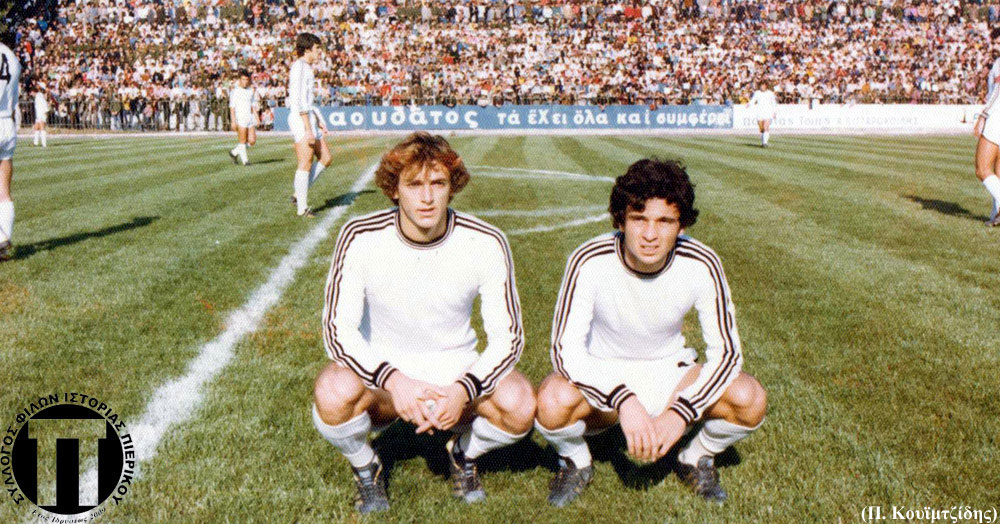 ( Πασχάλης Κουϊμτζίδης και Λάκης Κοκτσίδης, πριν από το πρώτο εντός έδρας παιχνίδι μας στις 26/10/1975, μετά την επάνοδό μας στην Α’ Εθνική )